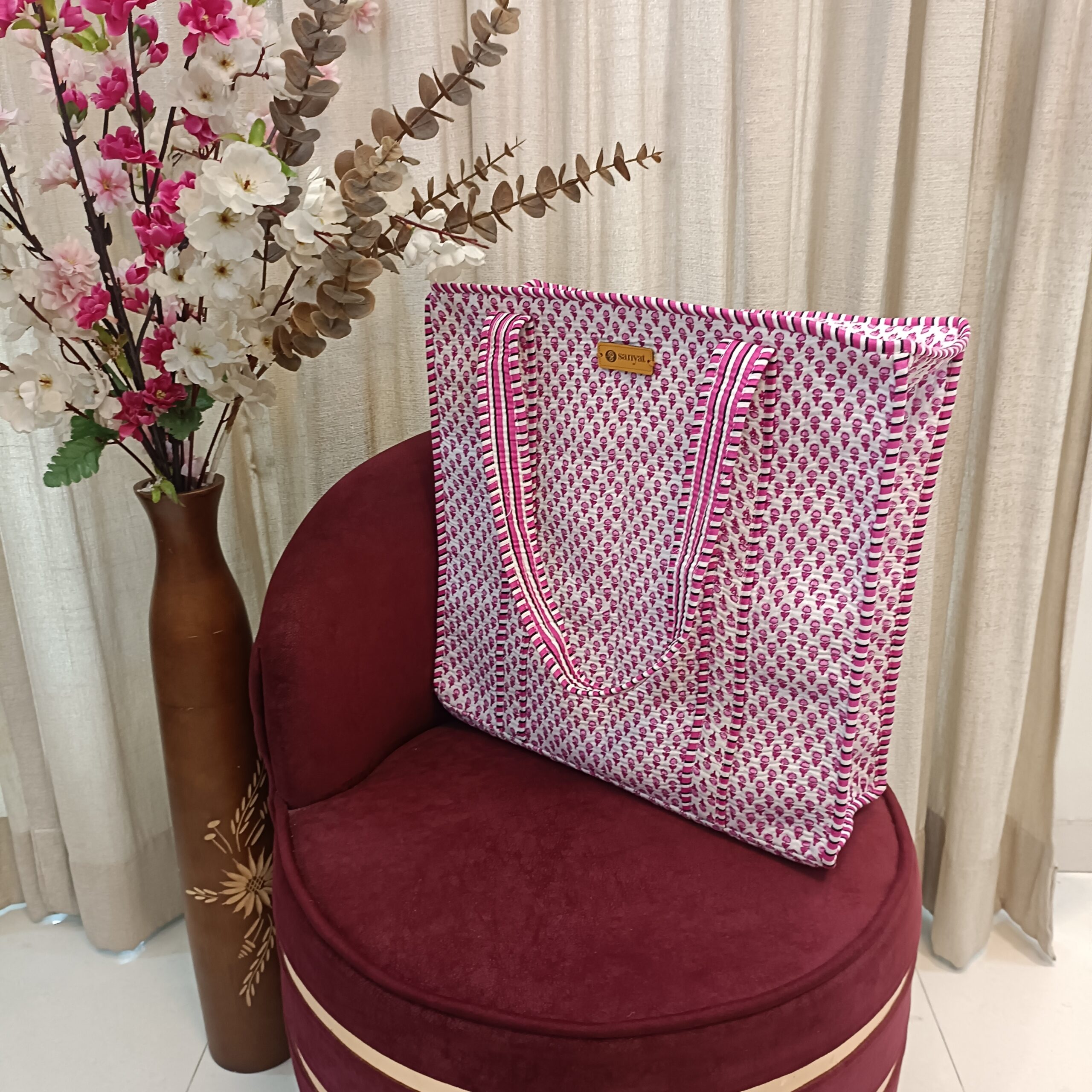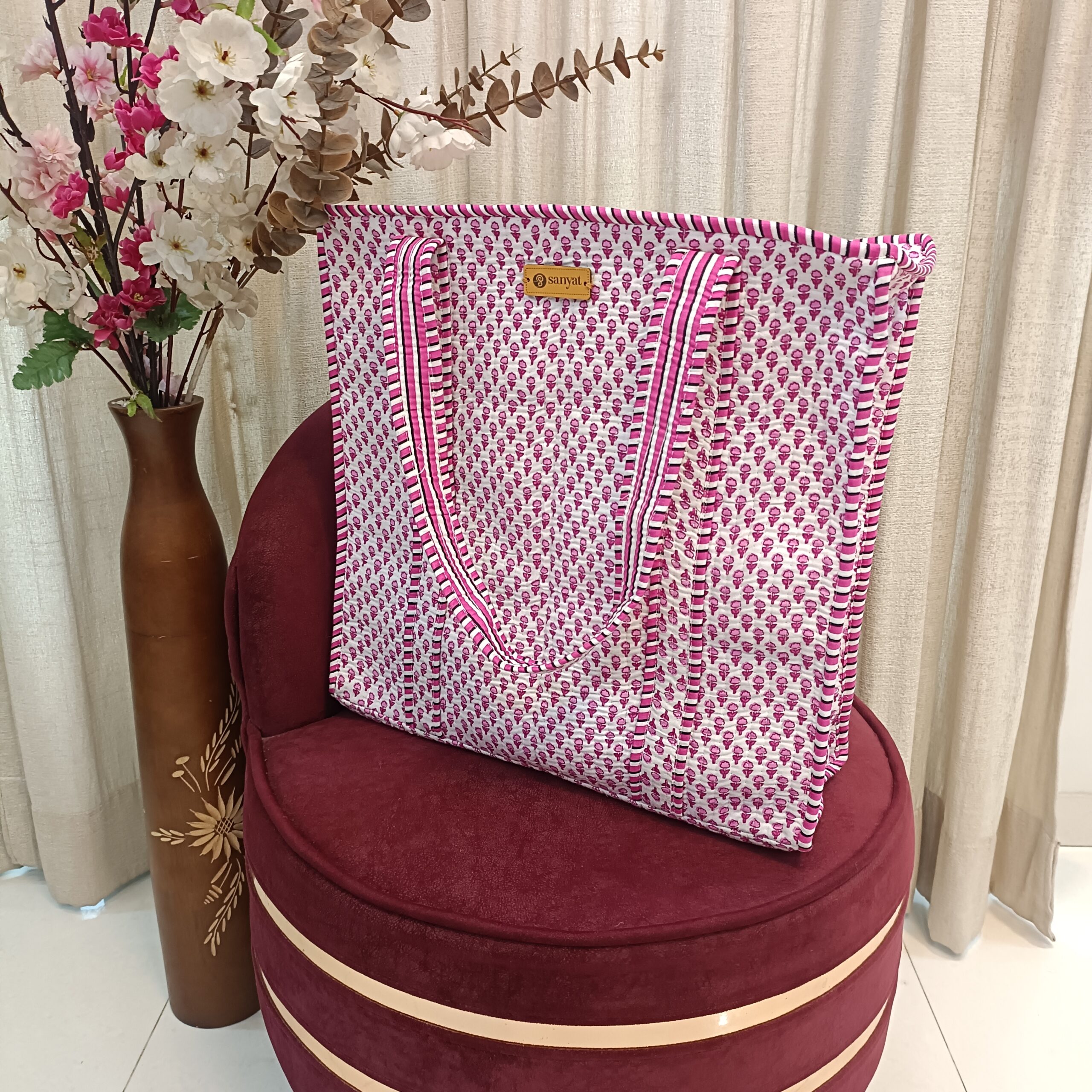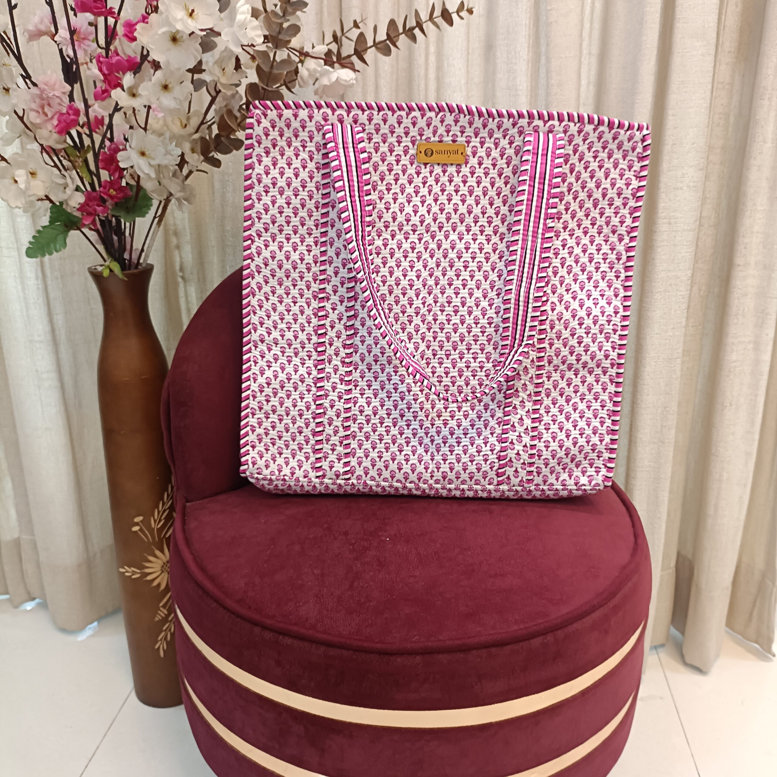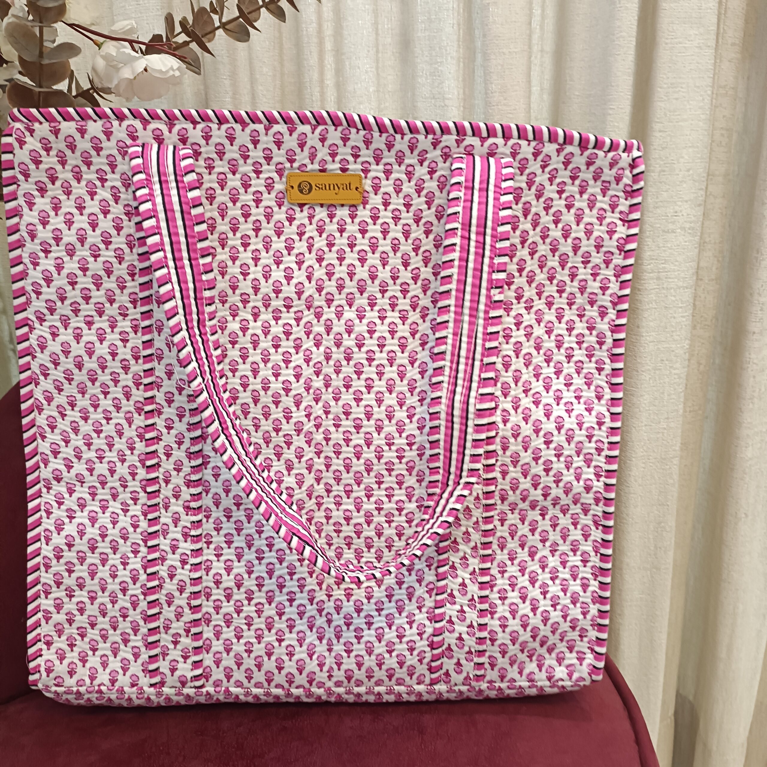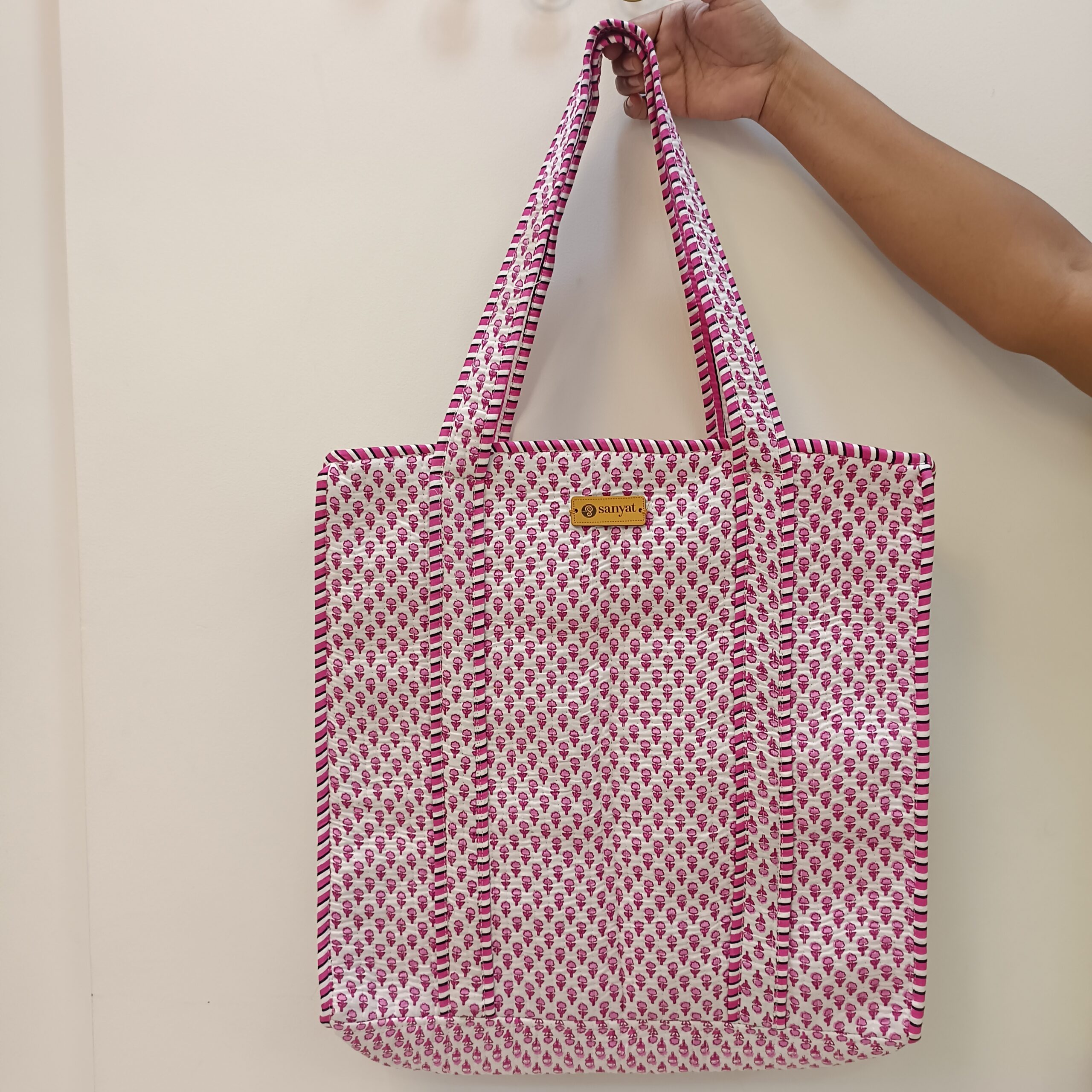 Be the first to review “Quilted Tote Bag white Pink Tiny pattern – 16″ x 16″”